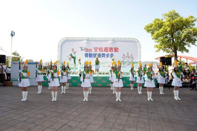 骨質疏鬆除了影響骨骼健康外,也會導致駝背、影響體態!今日活動特別邀請到北一女儀隊校友隊現場操槍表演,二十多位北一女前儀隊成員、資深校友再度齊聚一堂,其中有六位六十歲以上的祖母綠成員,穿上高中儀隊制服,身材挺拔、風姿綽約,不減當年實力;即便是扛起幾公斤重的步槍,依然能展現完美的優雅體態,表演了五分多鐘的耍槍、刺槍動作,引來現場滿堂采。